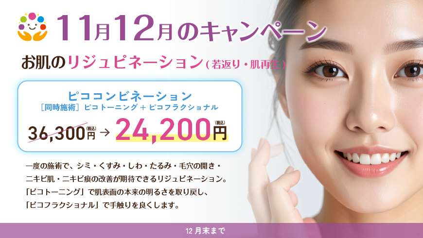 お肌の若返りを目指す方へ、人気の「ピココンビネーション」が特別価格でご案内中です。